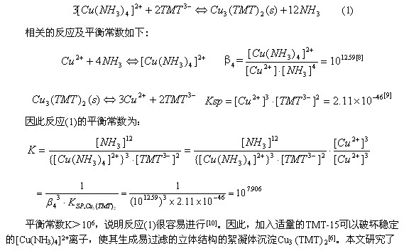 用TMT處理含銅氨絡(luò)合物廢水的研究