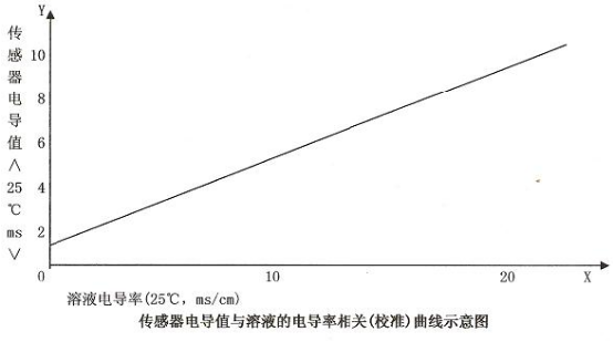 多孔隙將被土壤溶液所充滿,土壤溶液中的鹽分離子測(cè)定時(shí),儀器所顯示的用鉑網(wǎng)電極測(cè)得的電導(dǎo)值與土壤電導(dǎo)率之間的關(guān)系曲線,在一定范圍內(nèi),近似一條直線,可用公式Y(jié)=BX+A表示。式中A稱為截距,B稱為斜率,它們是決定傳感器特性的兩個(gè)常數(shù)。